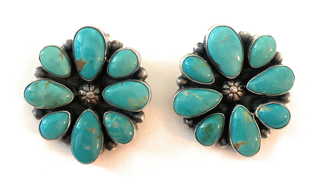 Navajo Sterling Silver & Natural Turquoise Cluster Post Earrings