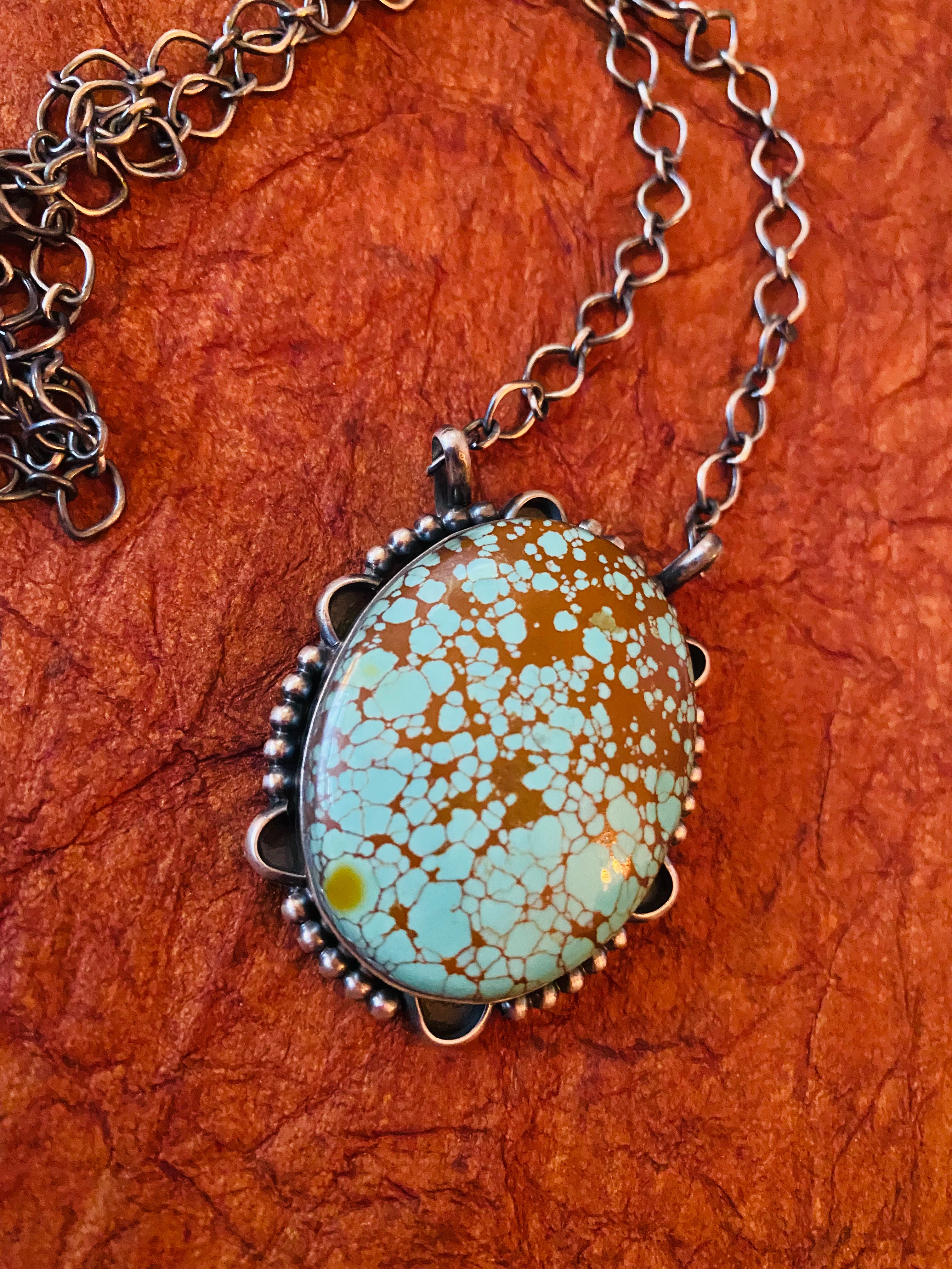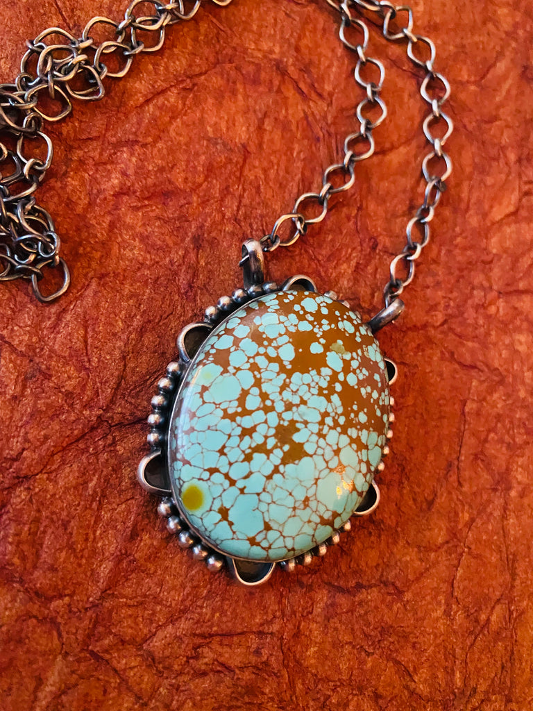 Navajo Sterling Silver & Number 8 Turquoise Necklace
