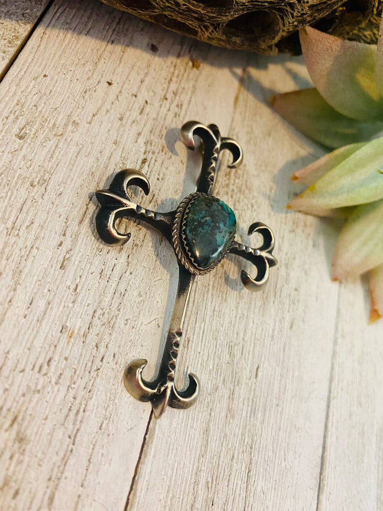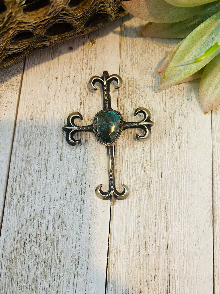 Navajo Sterling Silver & Royston Turquoise Cross Pendant By Martha Cayatineto