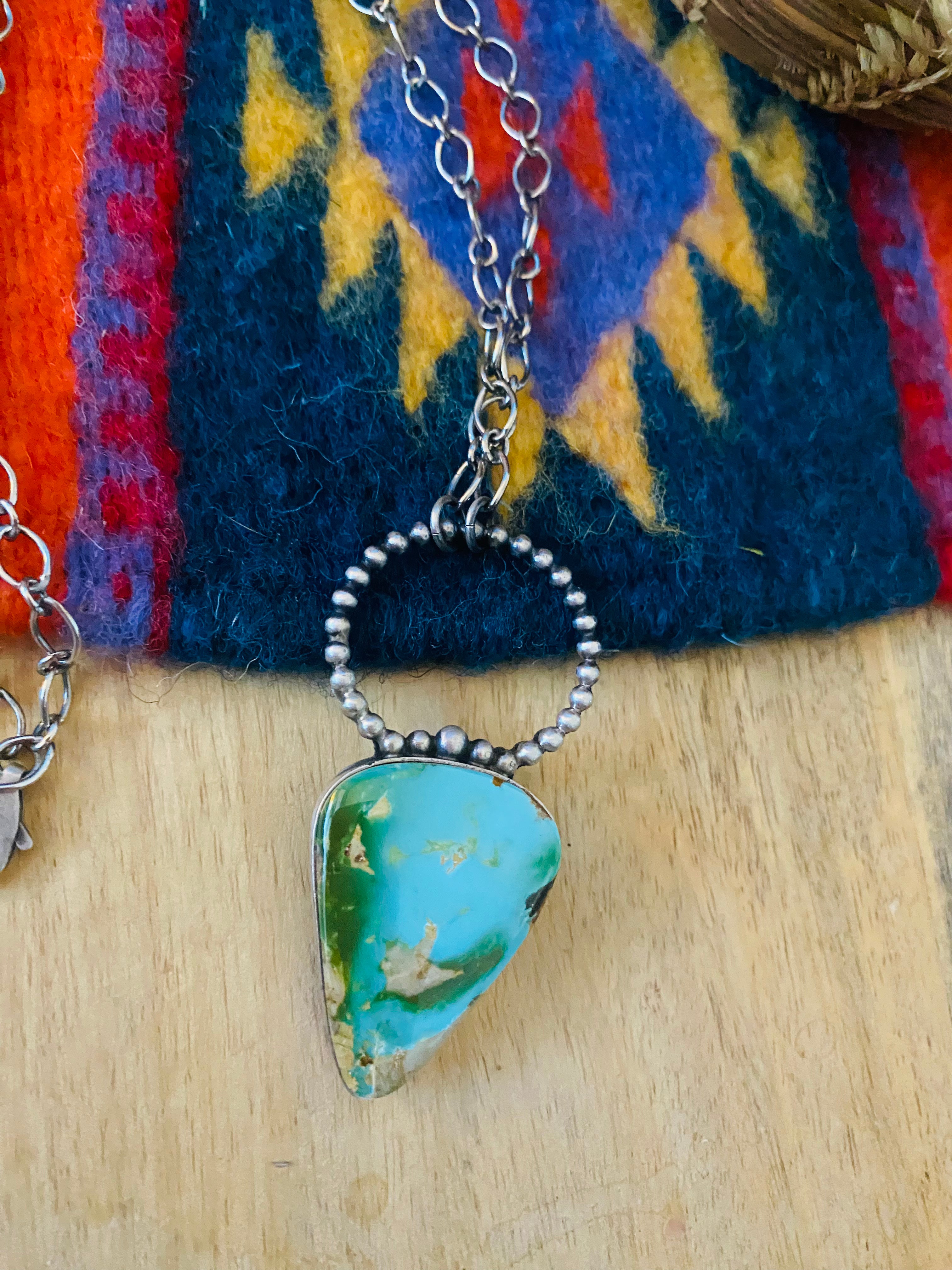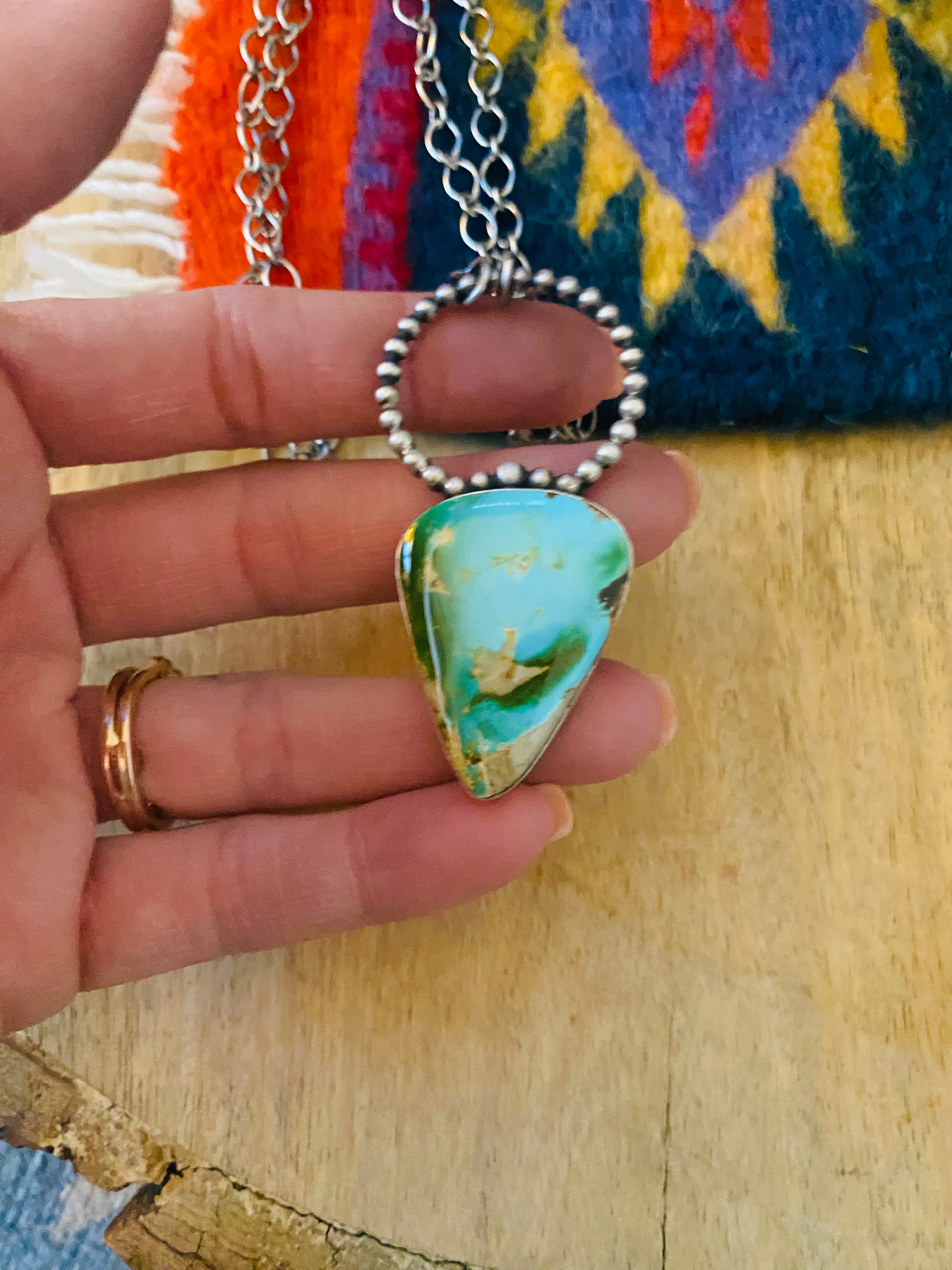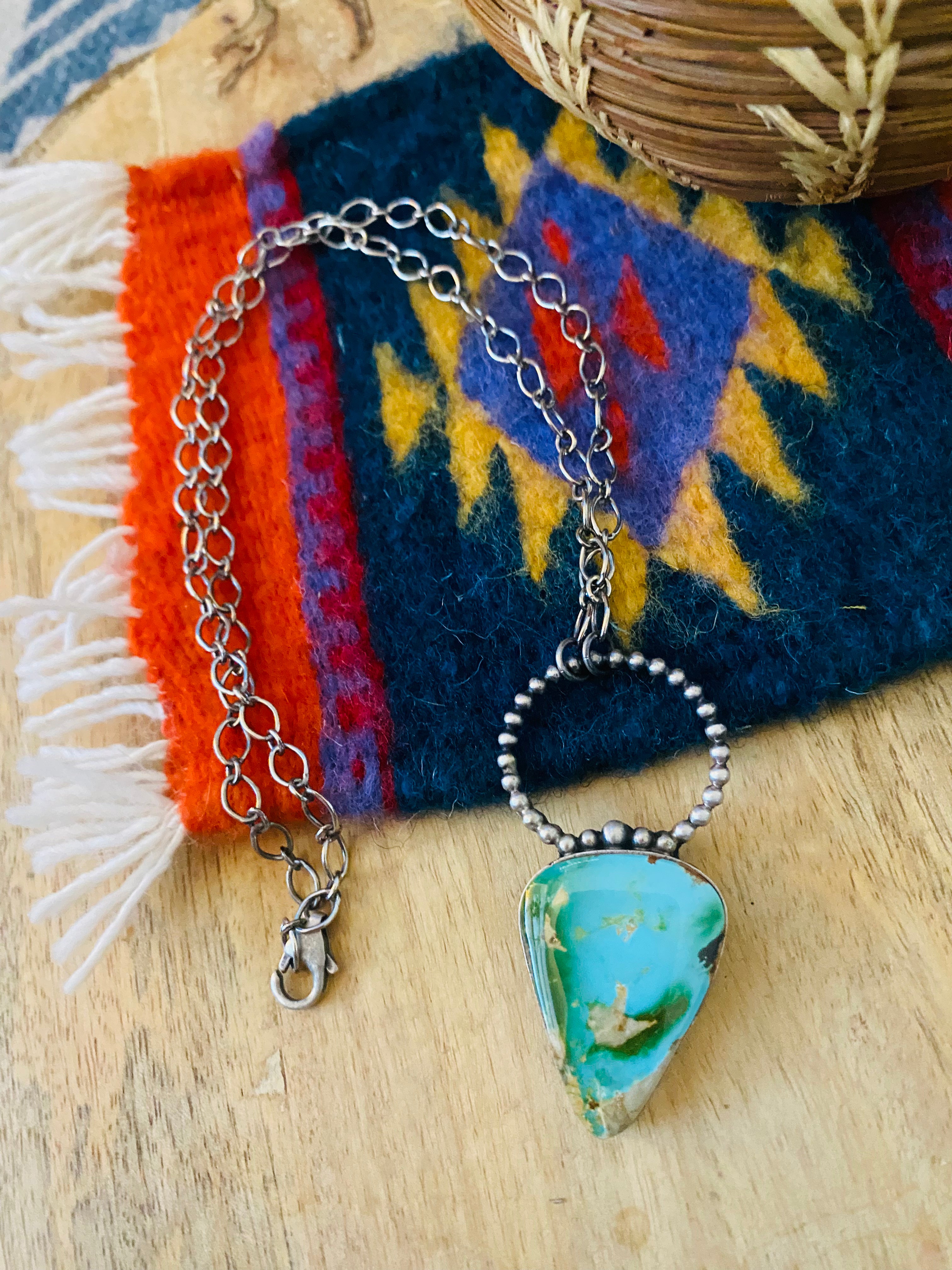 Navajo Sterling Silver & Sonoran Mountain Turquoise Necklace Signed