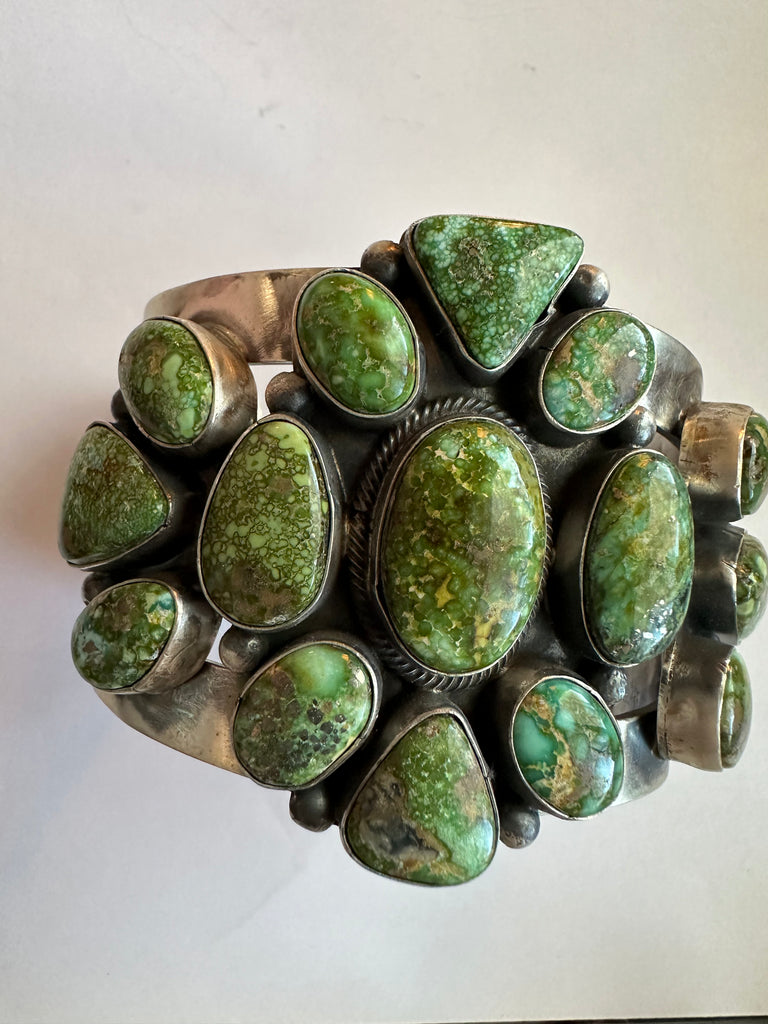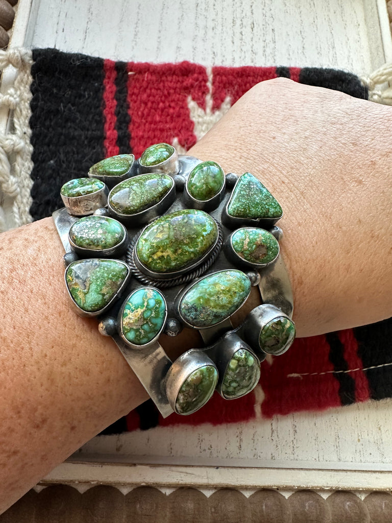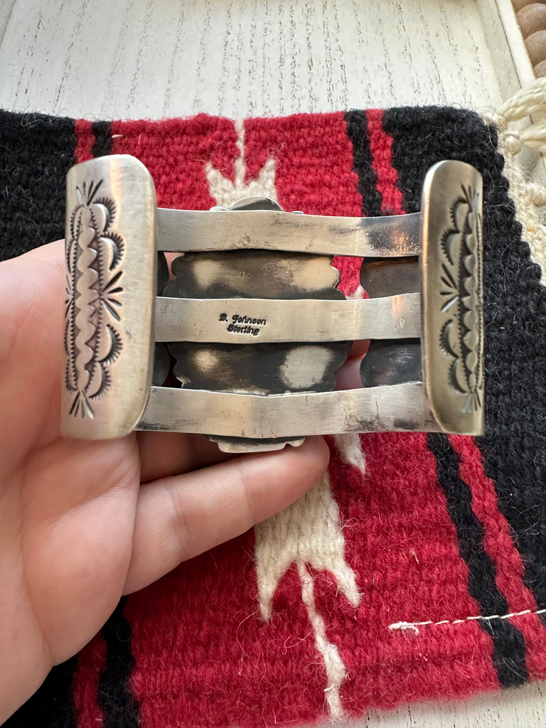 Navajo Sterling Silver & Sonoran Gold Turquoise Cuff Bracelet By B Johnson /
