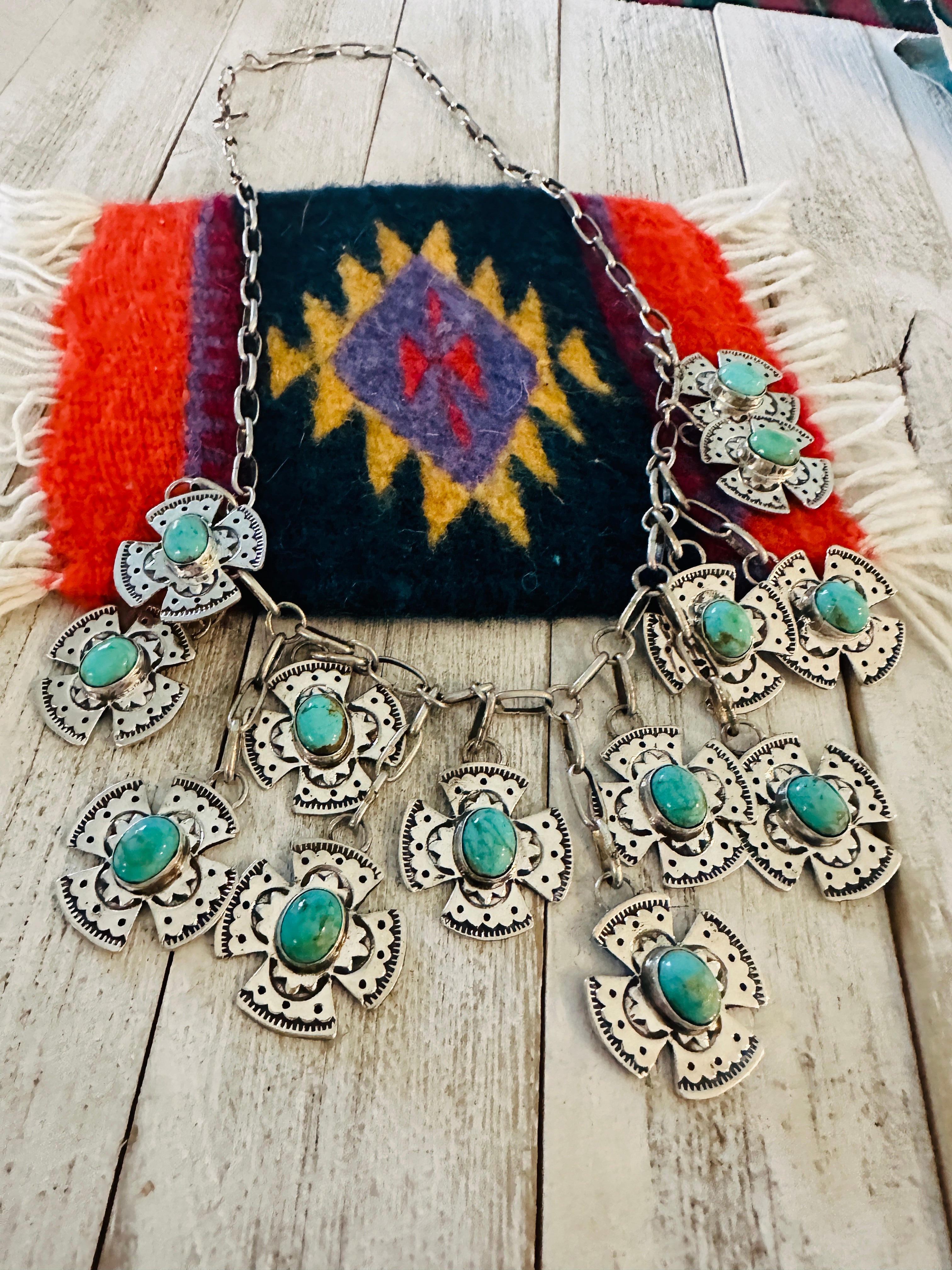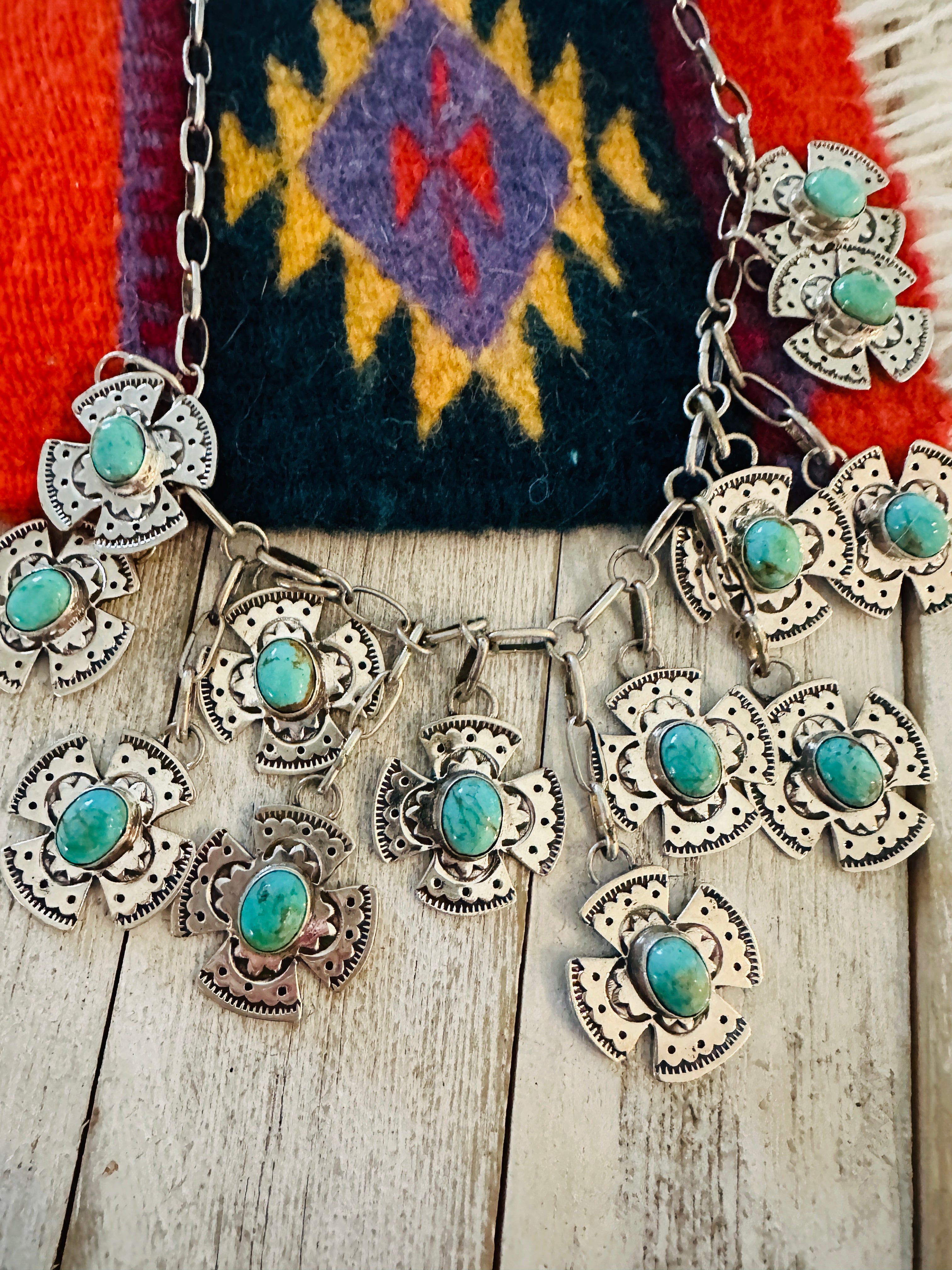 Navajo Sterling Silver & Turquoise Cross Drop Necklace