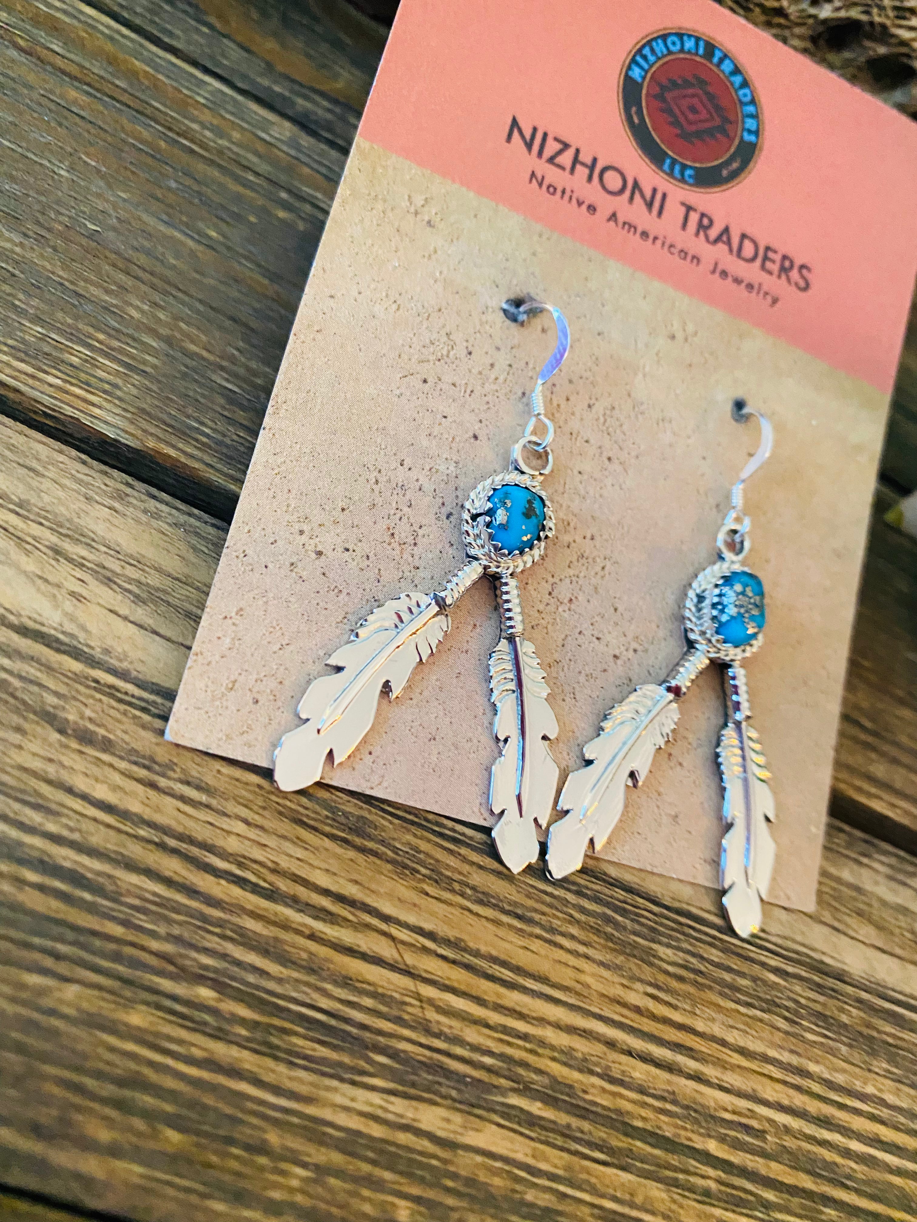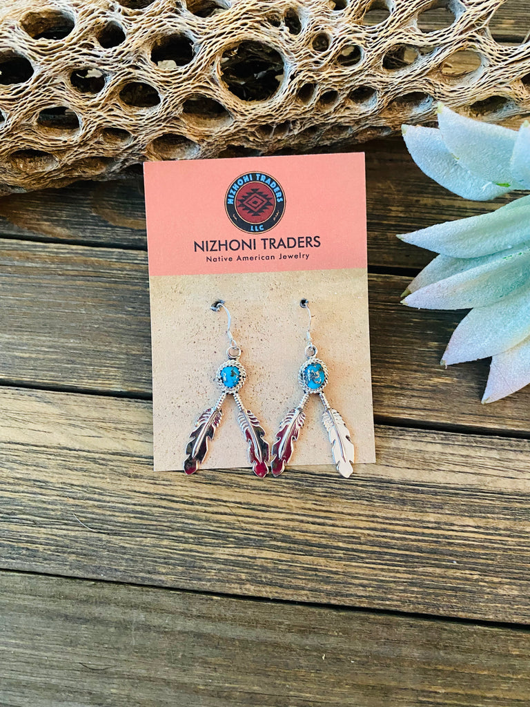 Navajo Sterling Silver & Turquoise Feather Dangle Earrings