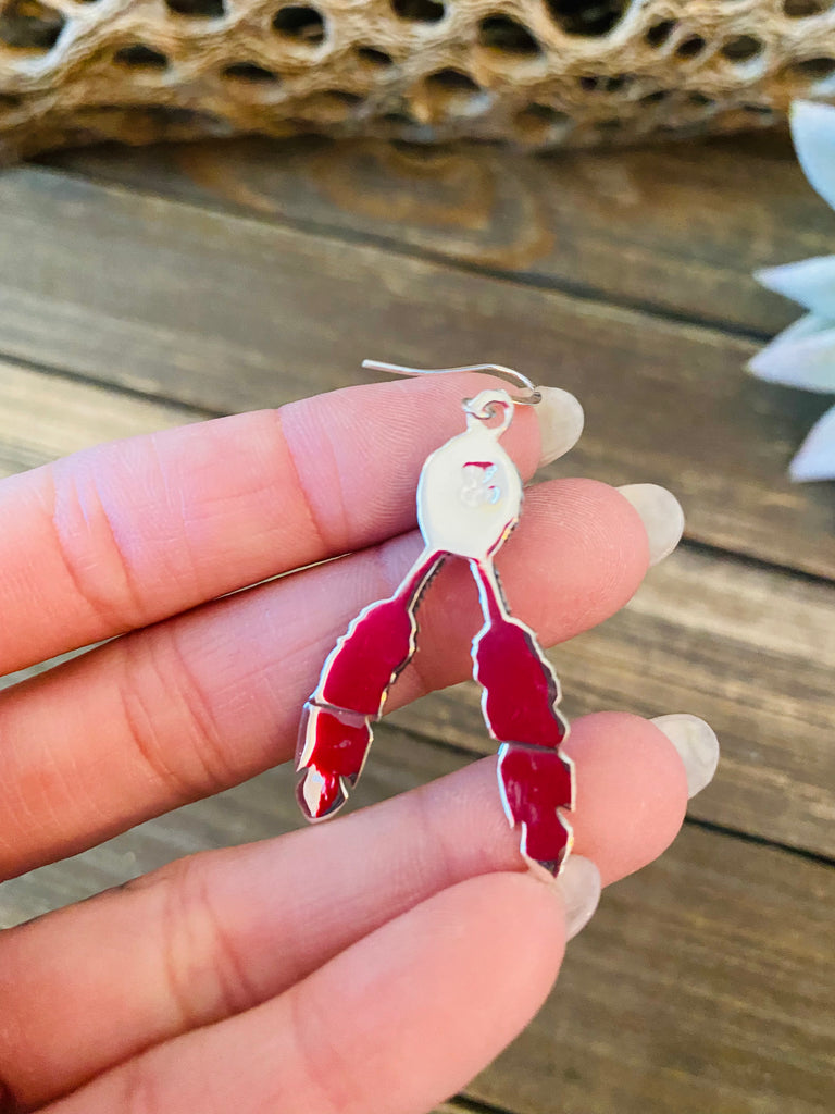 This is a pair of Navajo Sterling Silver and Turquoise feather dangle Earrings. These beautiful earrings are right at 2 inches long and 7/8 of an inch wide. Signed by the artist and stamped Sterling. Great piece for your collection!