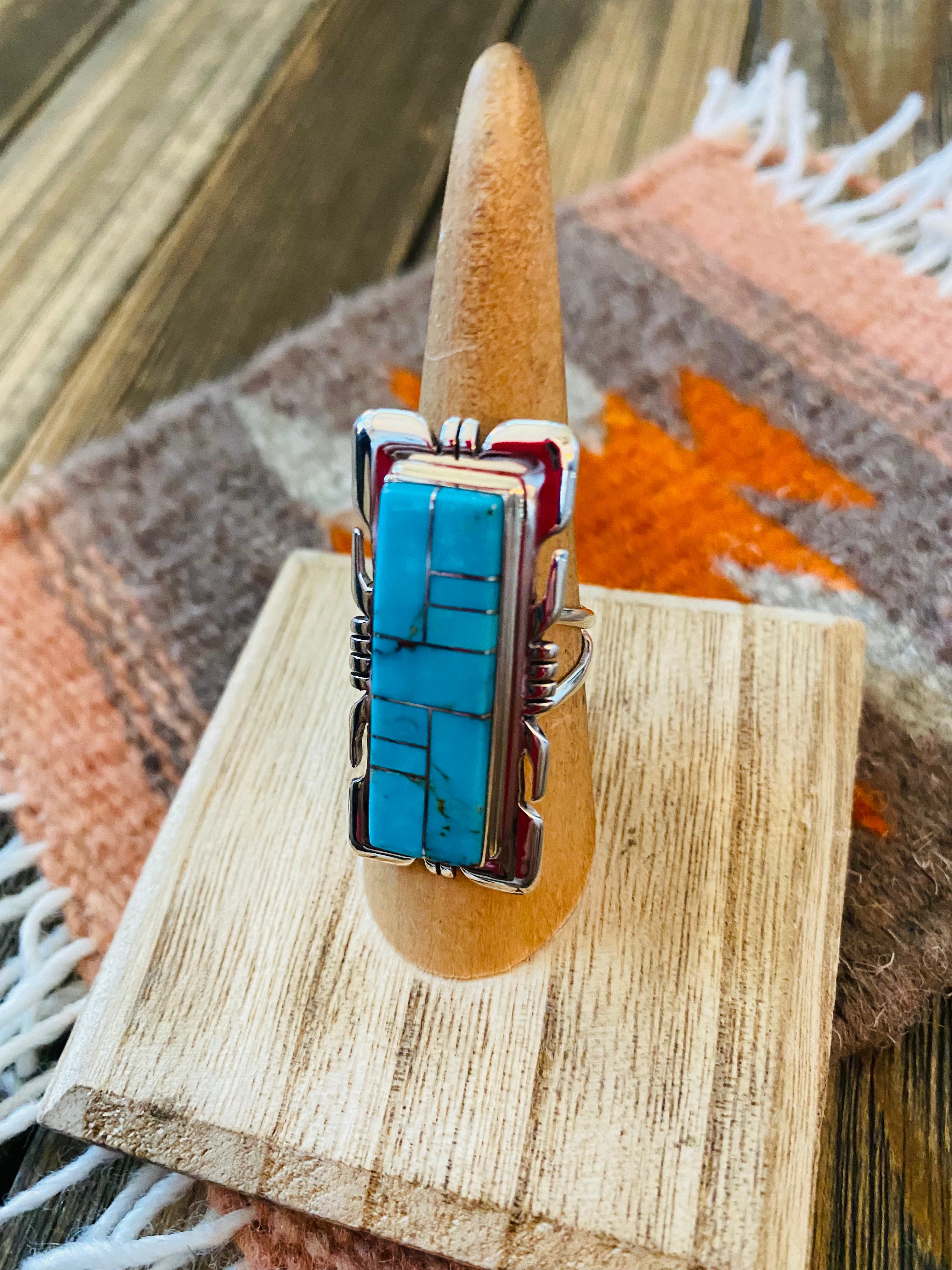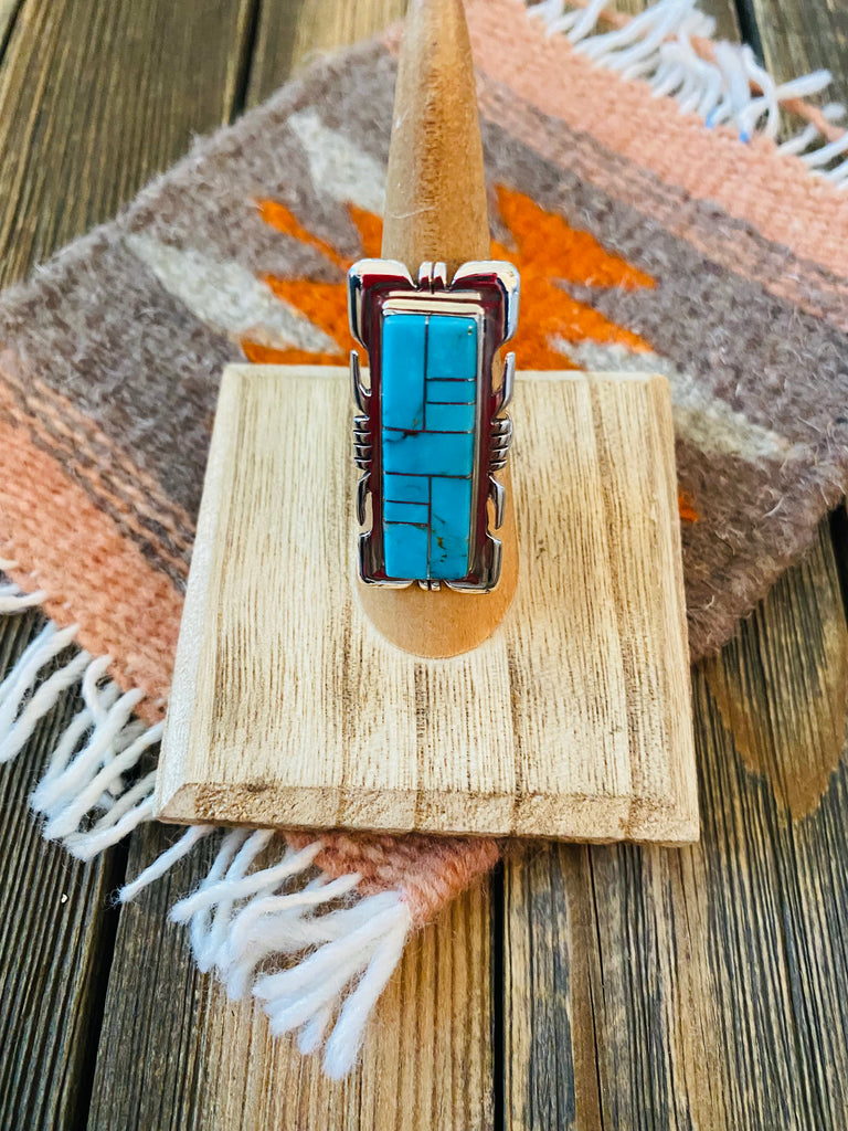Navajo Sterling Silver & Turquoise Inlay Ring Size 6.5