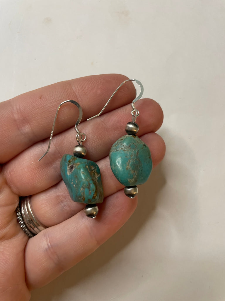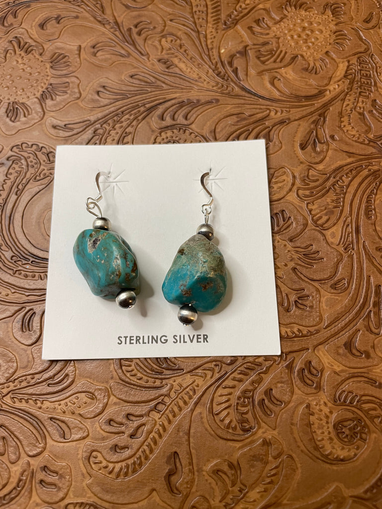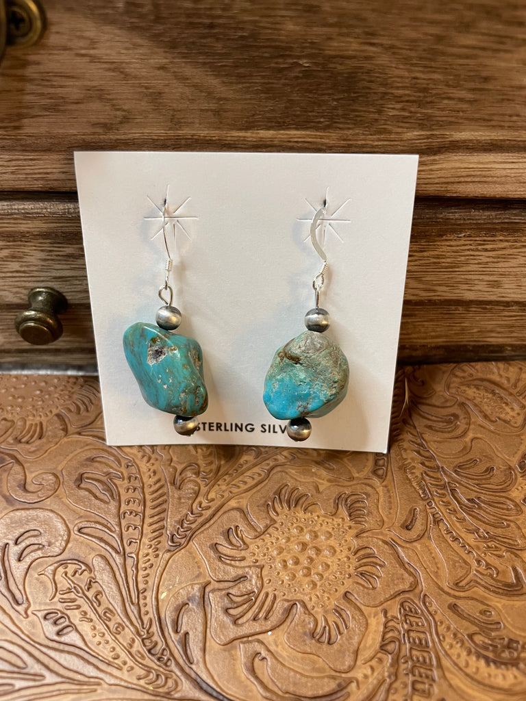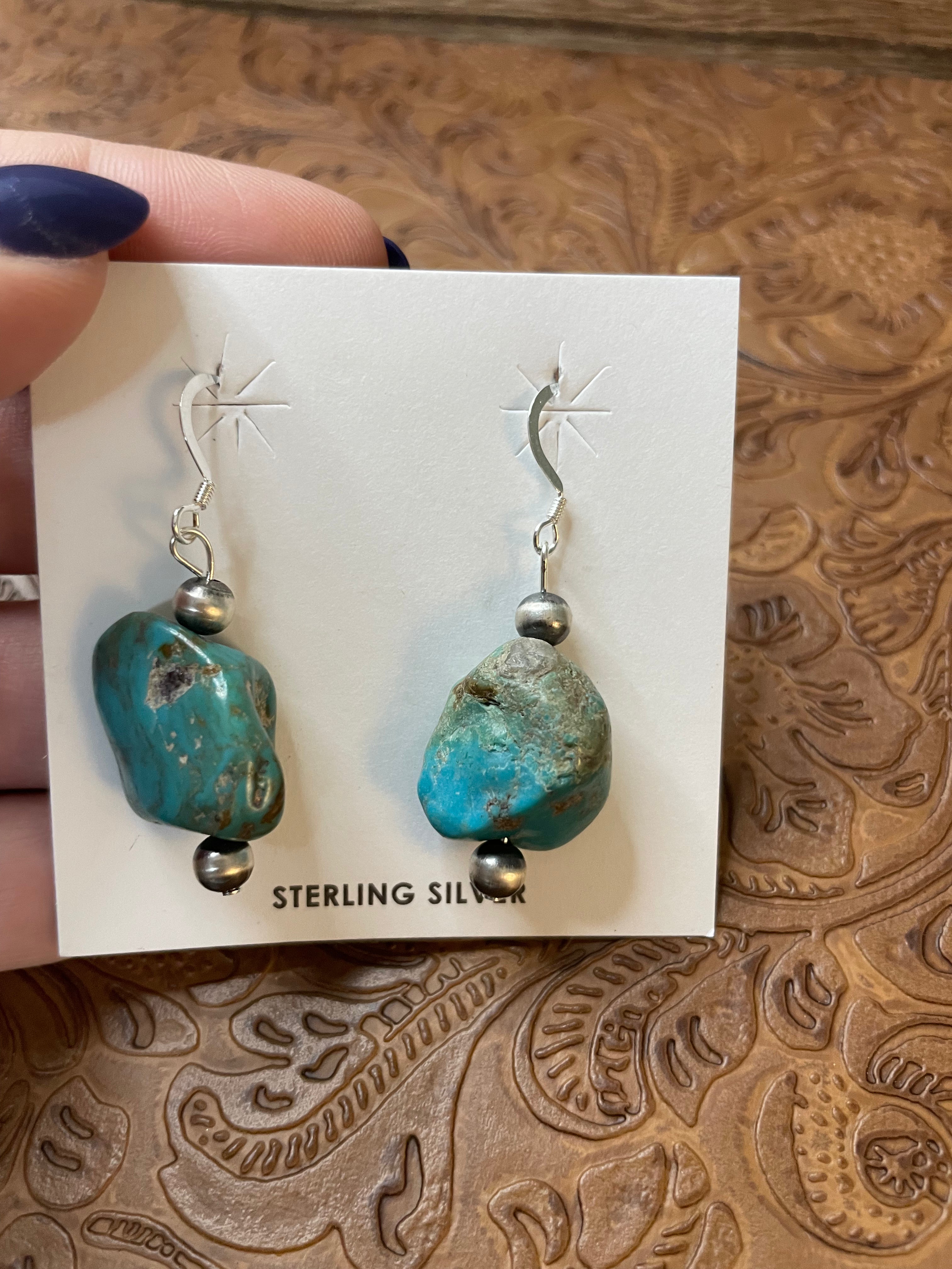 Handcrafted Sterling Silver Turquoise Stone Dangle Earrings