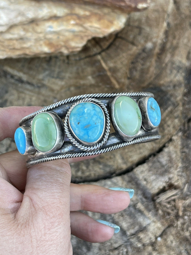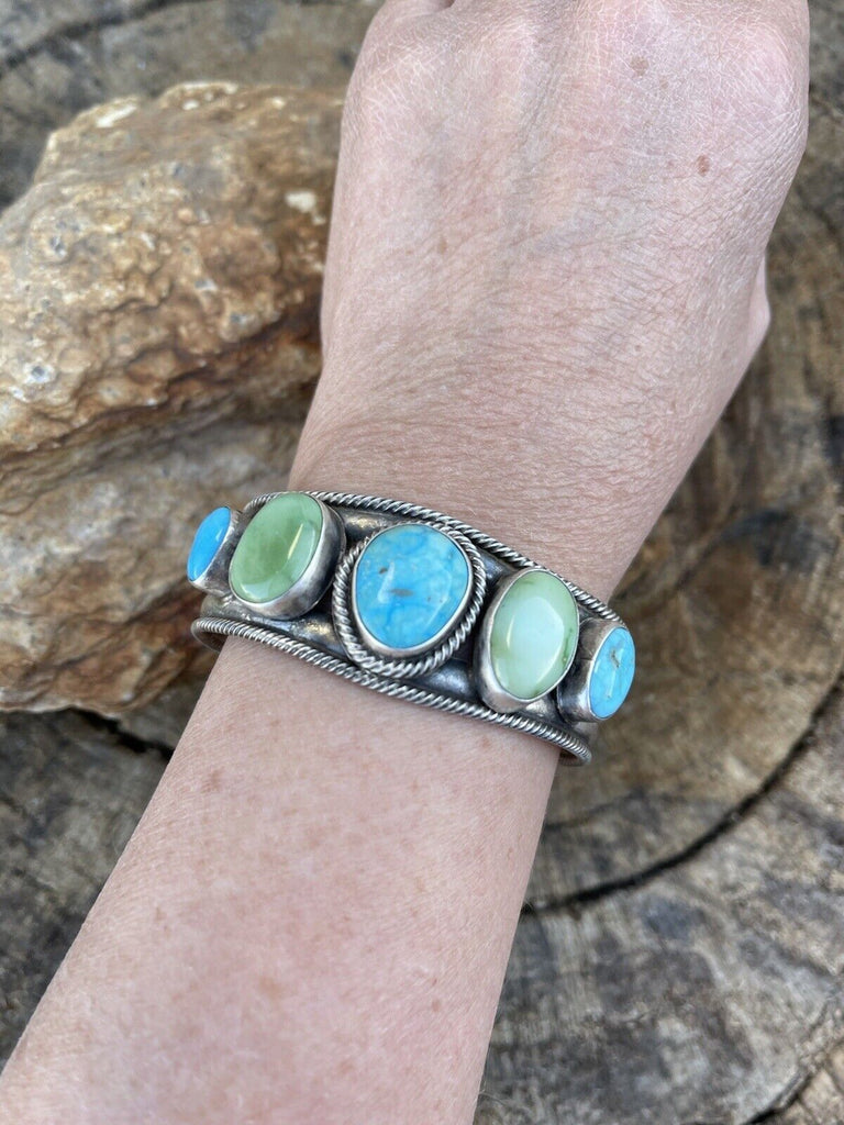 Navajo Sterling Sonoran Gold & Golden Hills Turquoise Cuff Bracelet Signed /