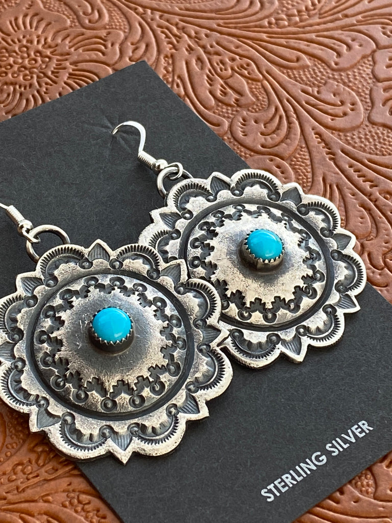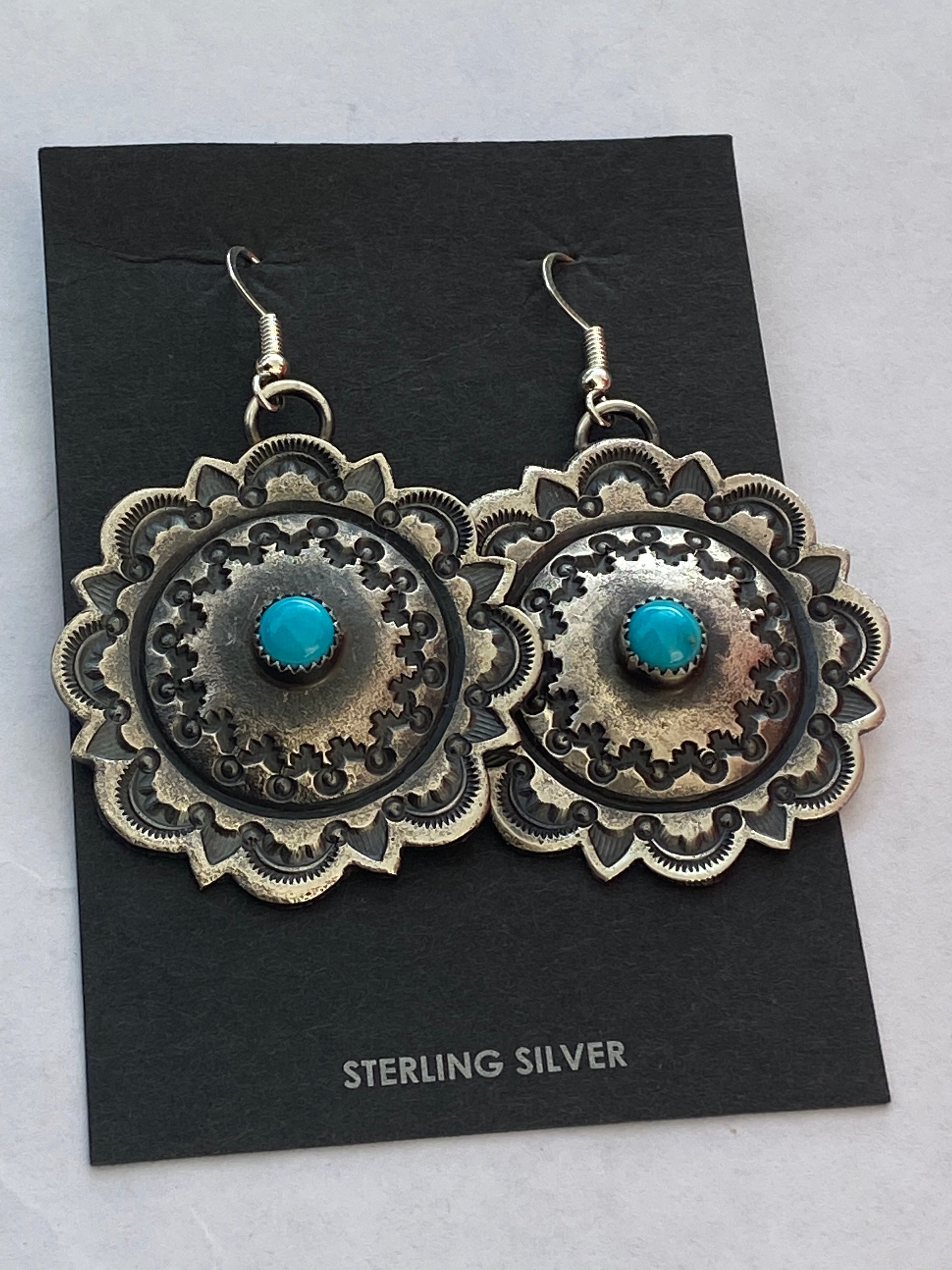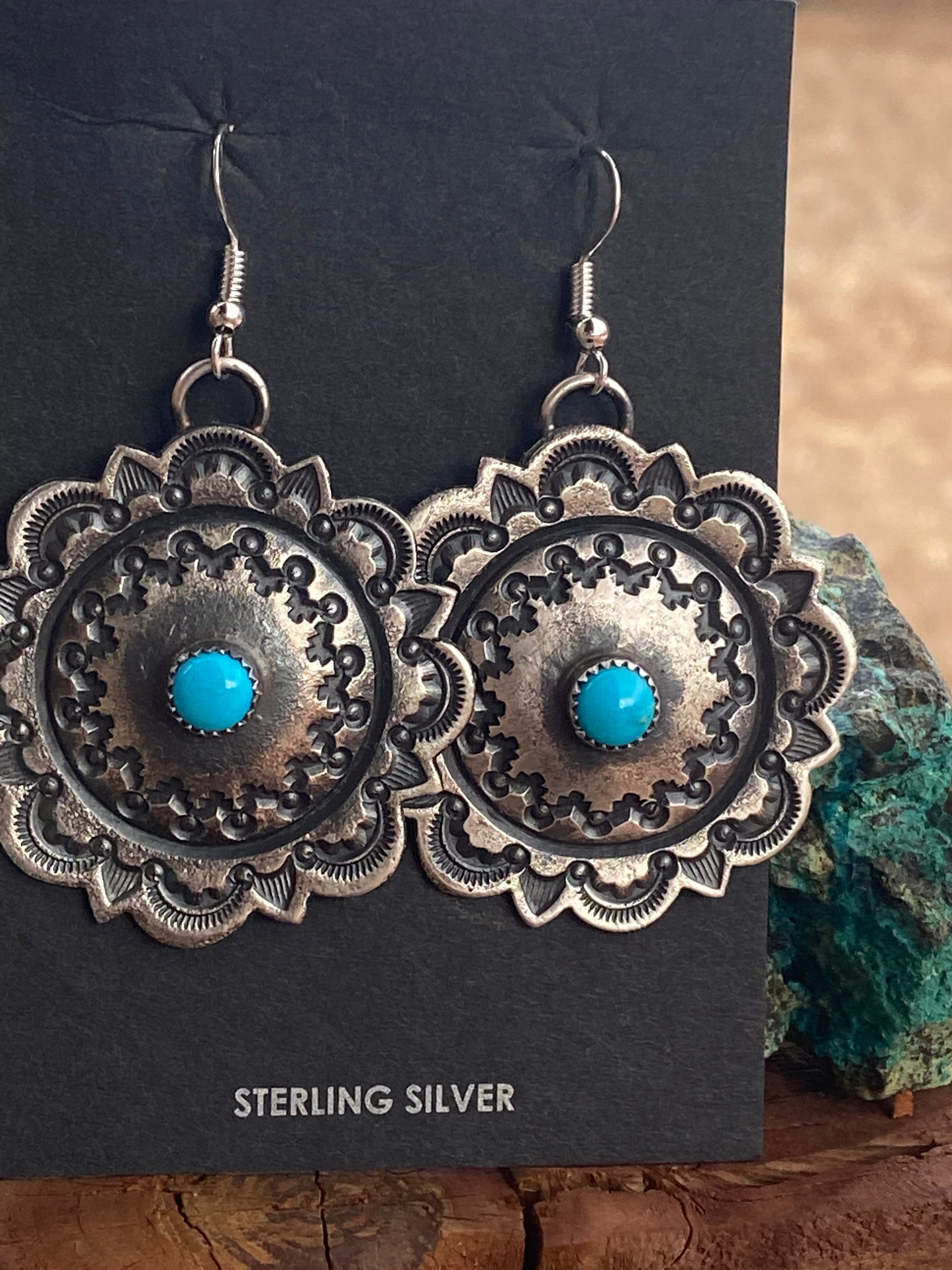 Handcrafted Turquoise & Sterling Silver Concho Dangle Earrings By Kevin Billah