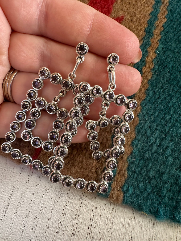 “Rodeo Queen” Nizhoni Sterling Silver & Amethyst Rectangle Dangle Earrings