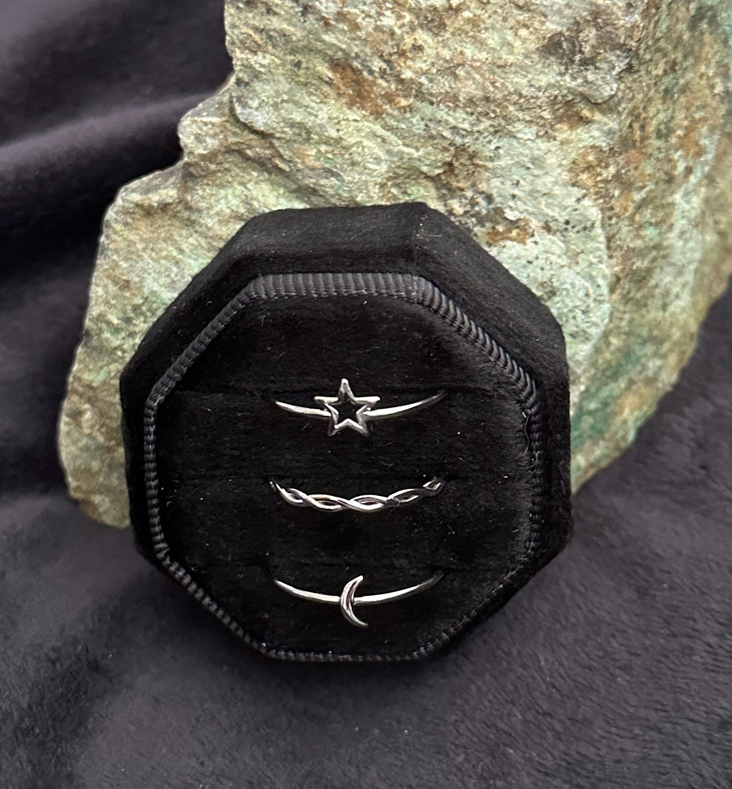 Sterling Silver Celestial Stacking Ring Set of 3 Sale price$ 72.00