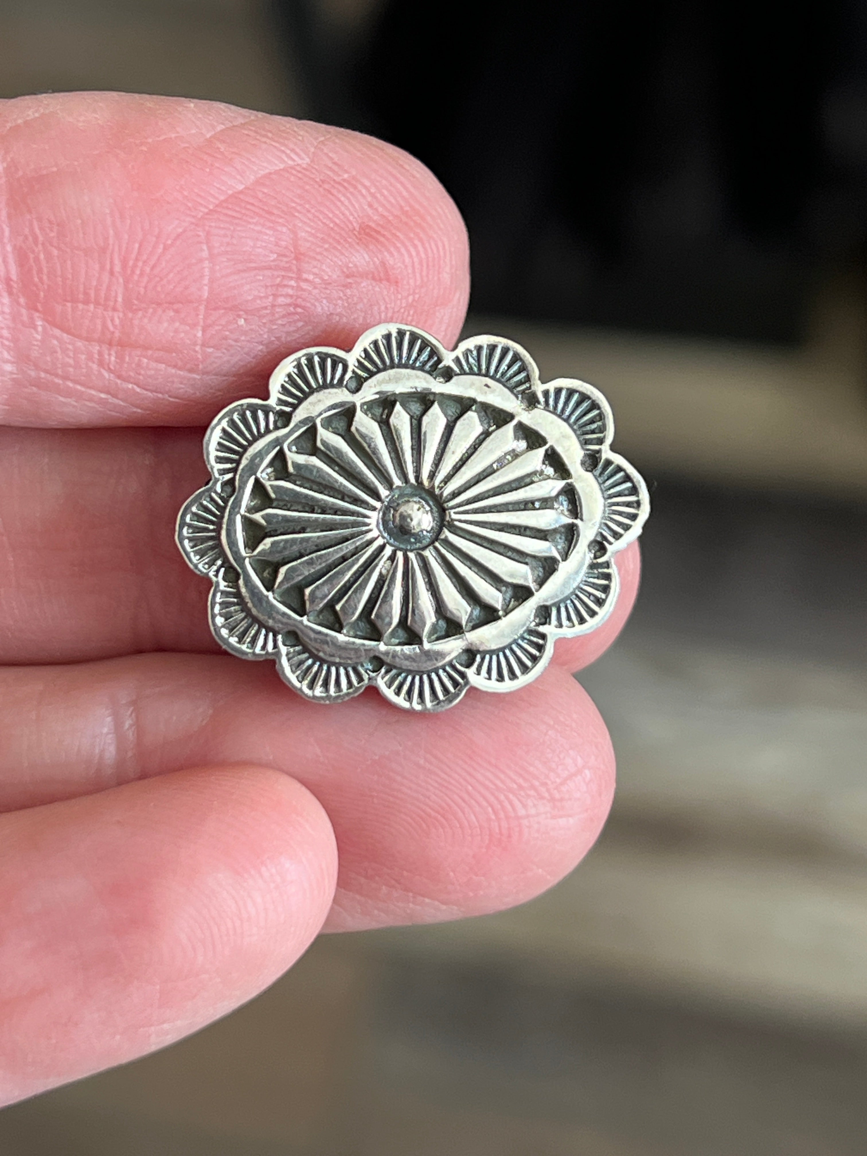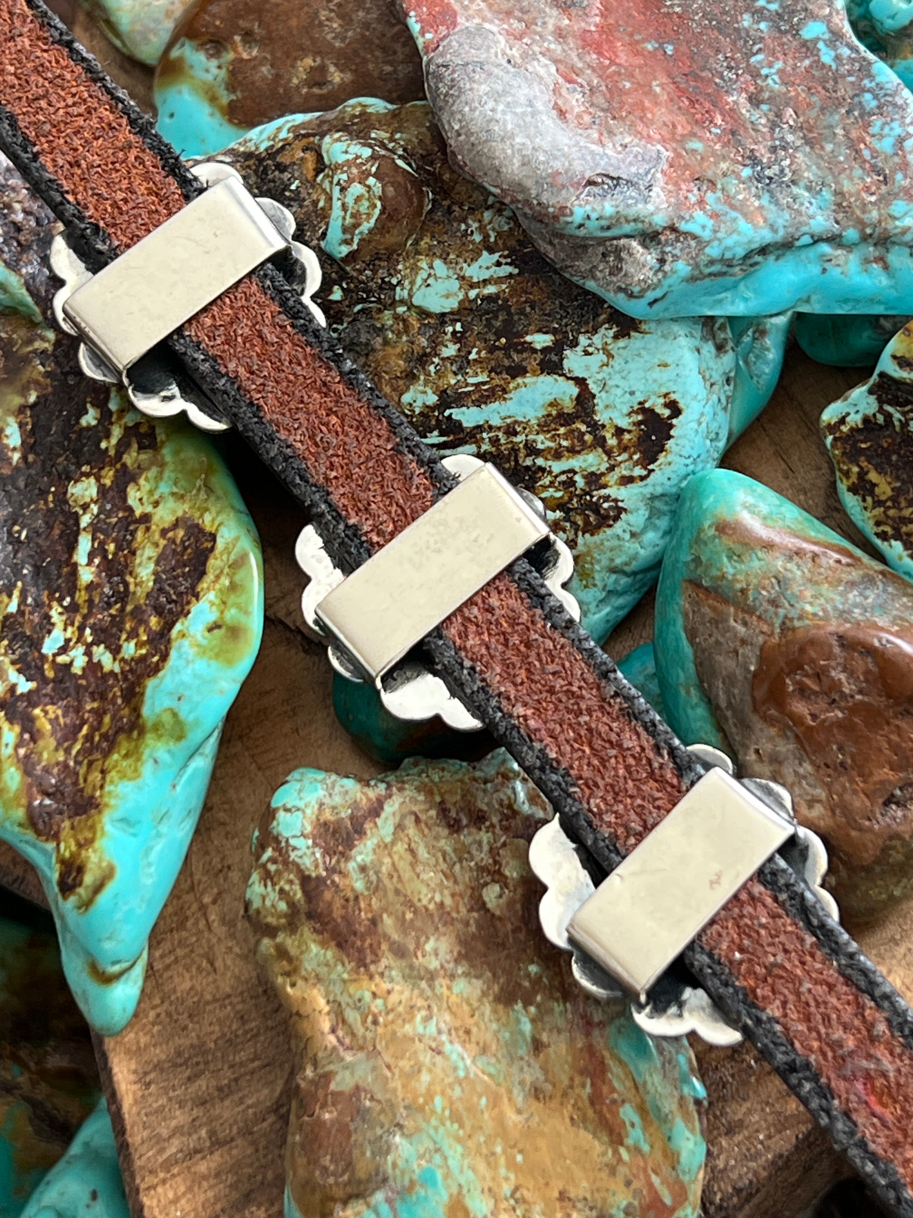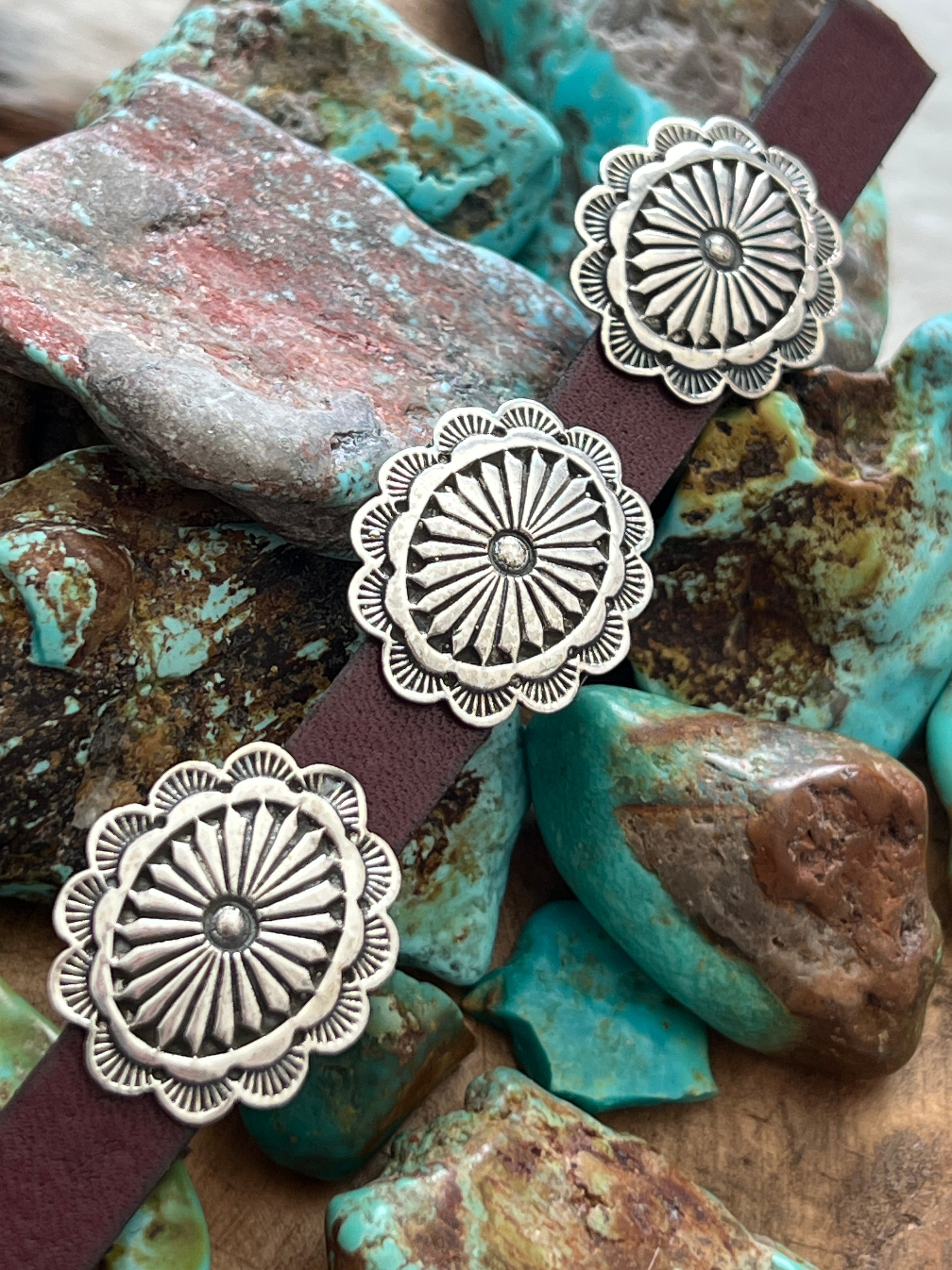 These sterling silver slide conchos are perfect for your leather projects! Slide bars are base metal. Make sure to search “Concho Slide” to see all styles available. This listing is for one piece.