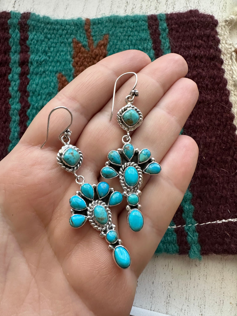 Beautiful Natural Turquoise and Sterling Silver Dangle Earrings.