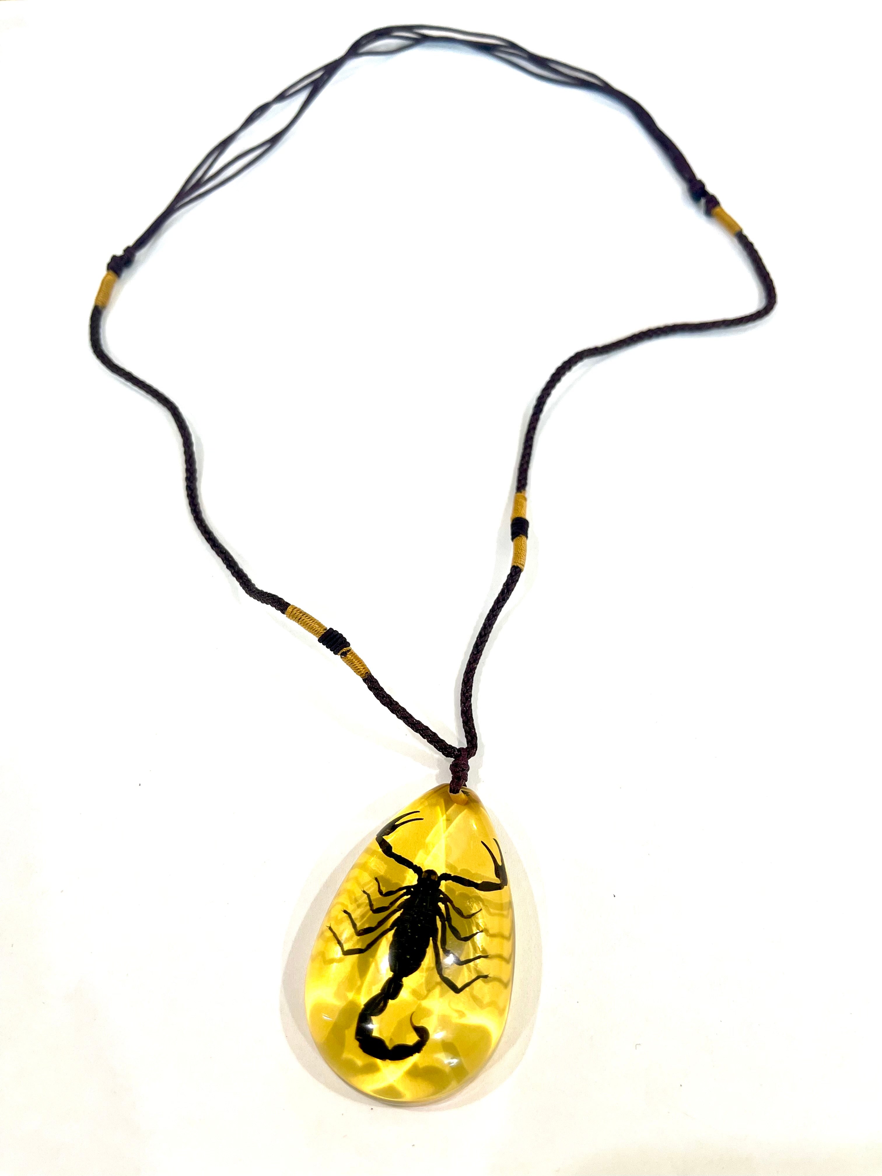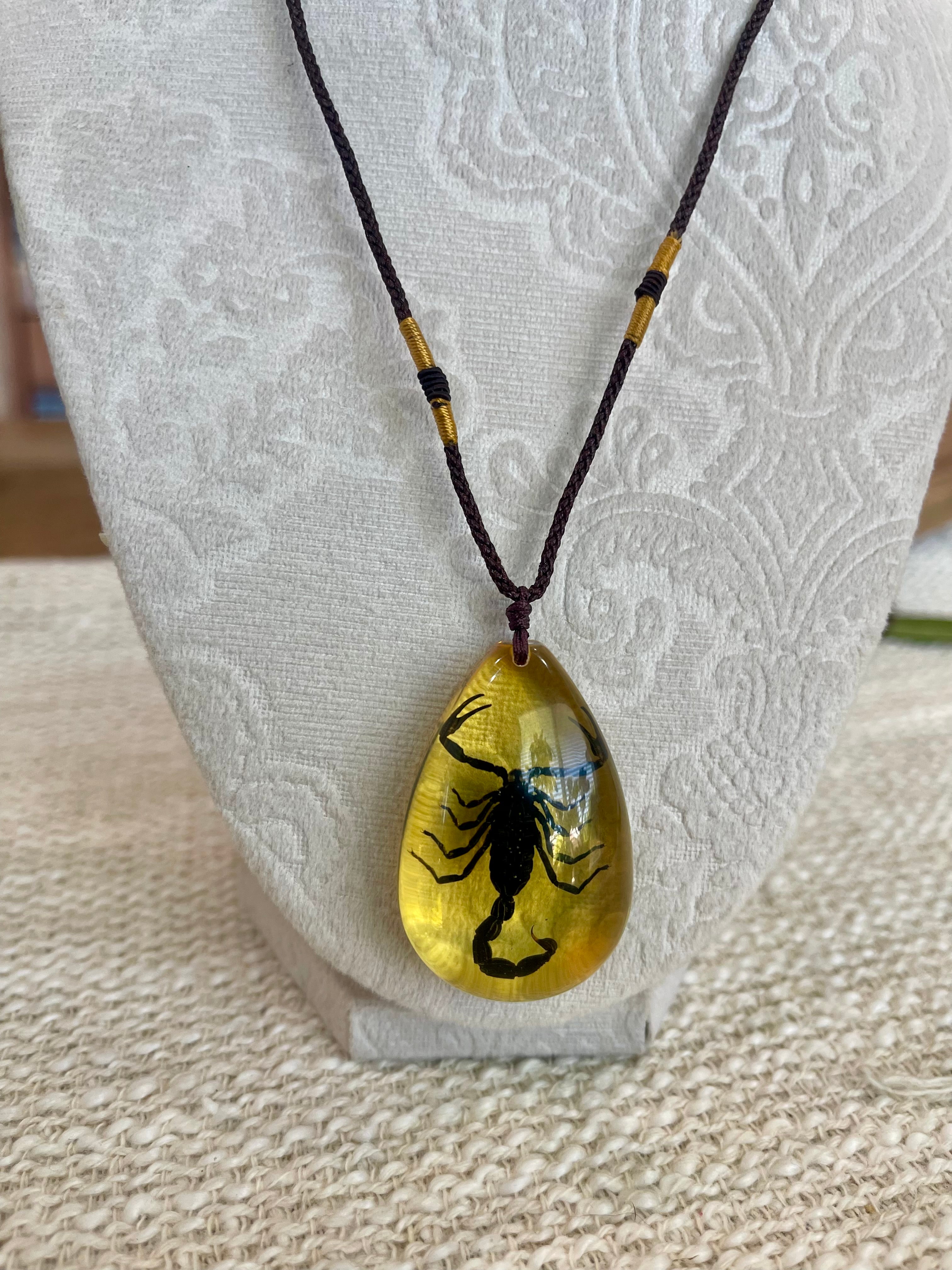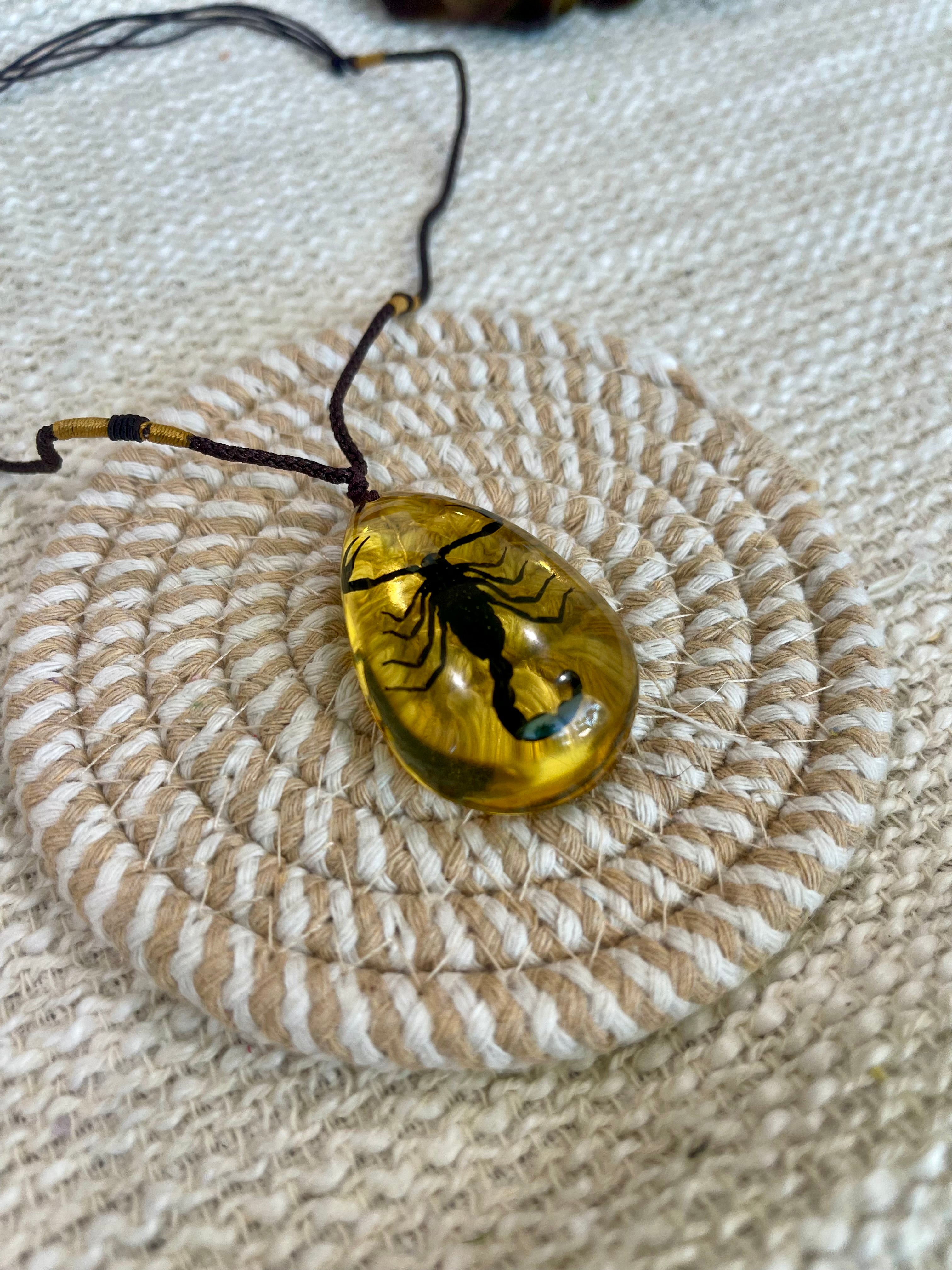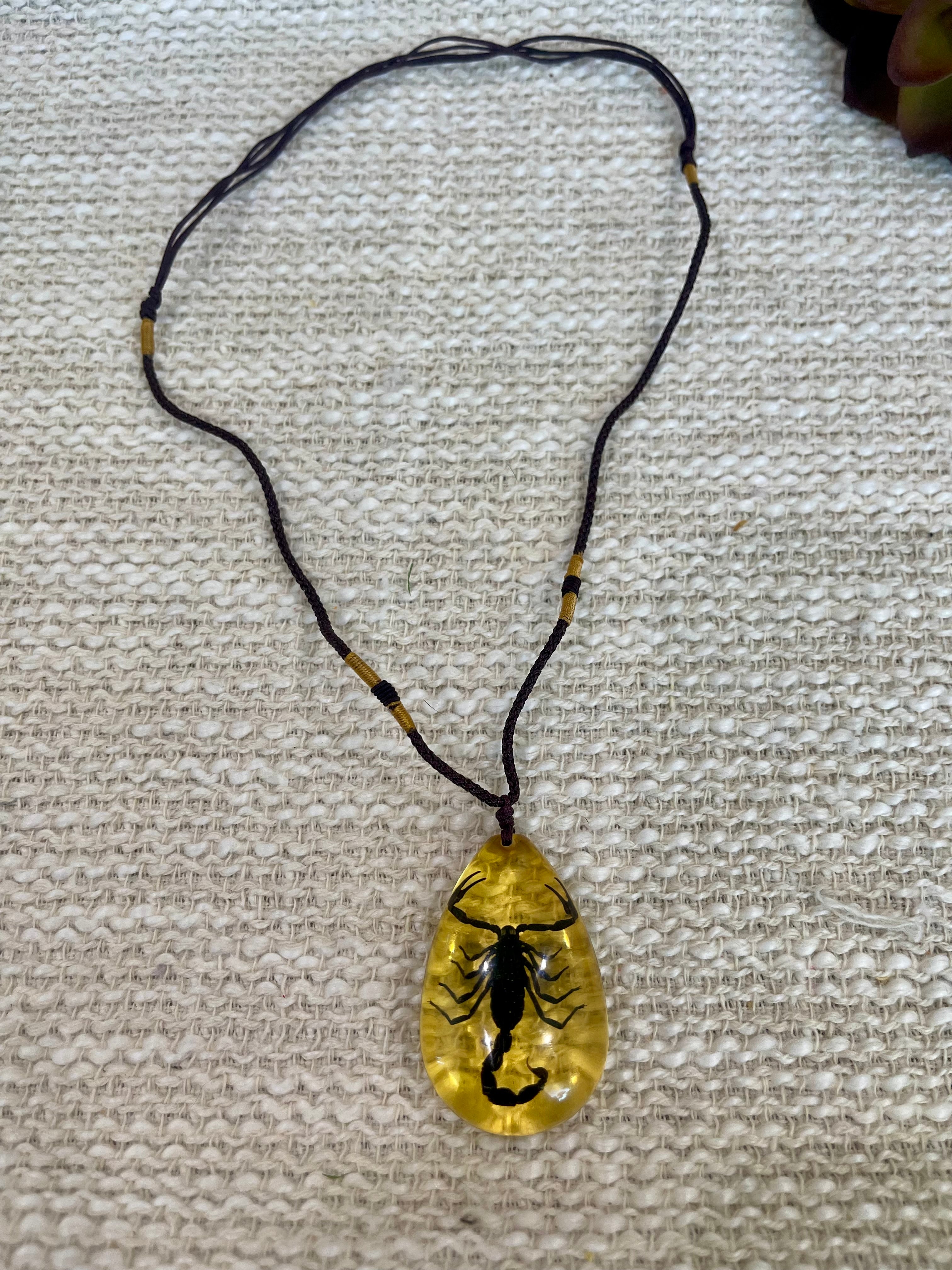 Beautiful handmade scorpion necklace . Definitely one of a kind. Measuring about 12 inches long. But definitely can be adjusted. Scorpion pendant measures 1 7/8 inches long & 1 1/8 inches wide. Truly such a cool piece.